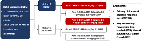 研究主要终点为颅内客观缓解率(ORR-IC),次要终点包括无进展生存期(PFS)、总生存期(OS)、总客观缓解(ORR)及安全性。